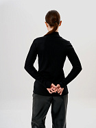 Водолазка полуприлегающего силуэта, среднего объема длиной до линии бедер, с длиннымм рукавом с разрезами по низу. Воротник стойка с запахом по центру передней половинки..