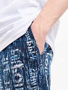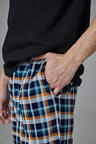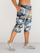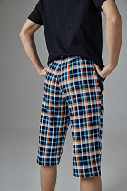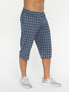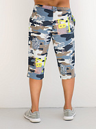 Бриджи прямые, длиной чуть ниже колен. Пояс цельнокроеный с эластичной тесьмой. Карманы в боковом шве с отделочной строчкой по входу в карман