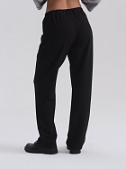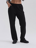 Брюки прямые с цельнокроеным поясом, эластичной тесьмой. Карманы наклонные с отделочной строчкой по входу в карман.