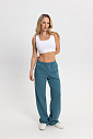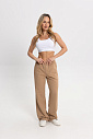 Брюки с притачным поясом. В поясе эластичная тесьма и прострочена кулиска. Карманы наклонные с отделочной строчкой по входу в карман.