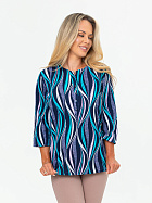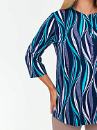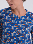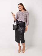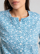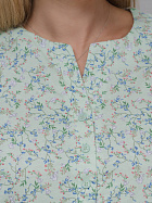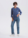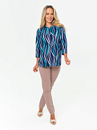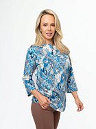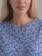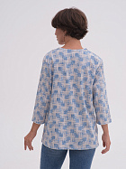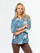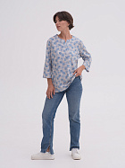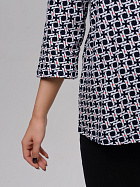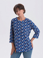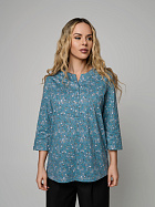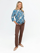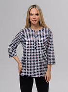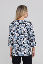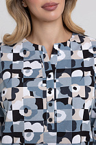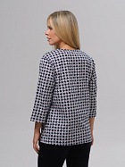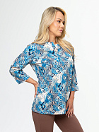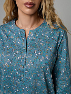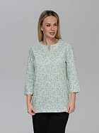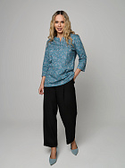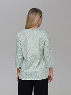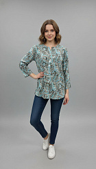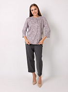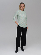 Джемпер слегка прилегающего силуэта среднего объема с рукавом длиной 3/4. Круглая горловина по спинке окантована узкой бейкой из основного полотна, по полочке обработана внутренней обтачкой. На полочке обработана удлиненная планка, застёгивается на пуговицы.