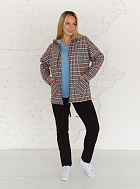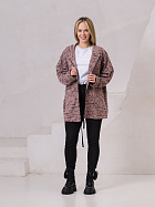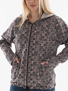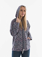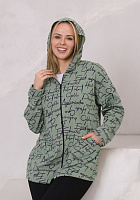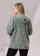 Джемпер свободного покроя на молнии с капюшоном. Рукав длинный на спущенном плече, по низу рукава притачная манжета. Шов горловины спинки закрыт бейкой.. На полочке накладной карман. Капюшон и по низу джемпер регулируется на шнур.