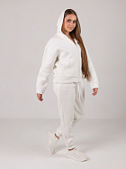 Джемпер прямого силуэта с застежкой на тесьму молния, с капюшоном. Рукав длинный на спущенном плече с притачной манжетой из основного полотна. На полочке джемпера настрочные карманы Кенгуру. По низу джемпера притачной пояс из основного полотна.
