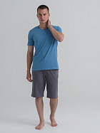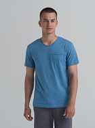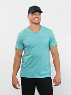 Джемпер мужской прямого силуэта с Vобразной горловиной и накладным карманом на груди и коротким рукавом..