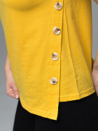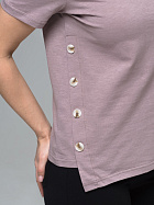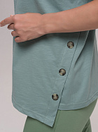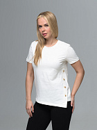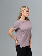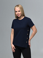 Джемпер женский прямого силуэта с коротким втачным рукавом, круглой горловиной, ассиметричным низом и косой планкой по левлму боковому шву с декоративными пуговицами.