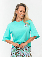 Джемпер свободного силуэта с втачным рукавом со спущенным плечем, длиной на уровне чуть выше бедер. Горловина округлая с притачной обтачкой. Полочка декорирована принтом.
