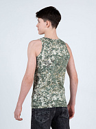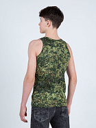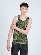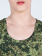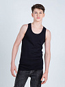 Майка классического силуэта с овальным вырезом горловины. Горловина и проймы окантованы бейкой из основного полотна.