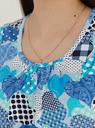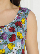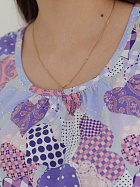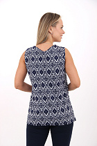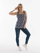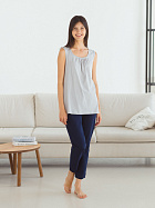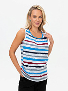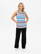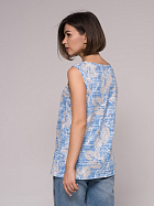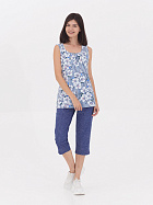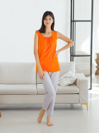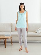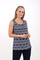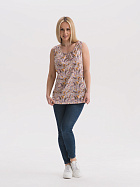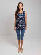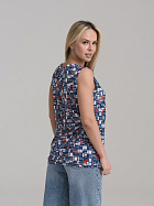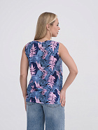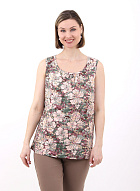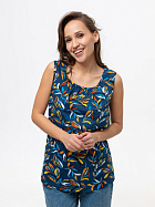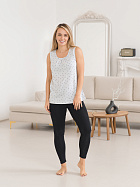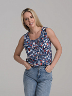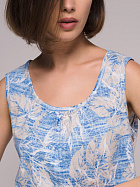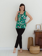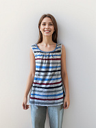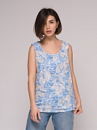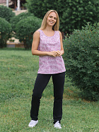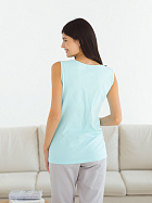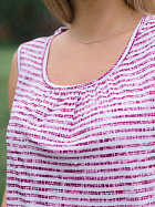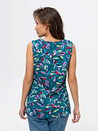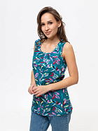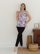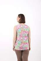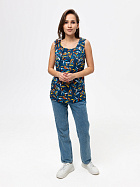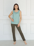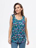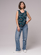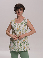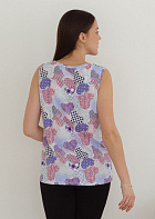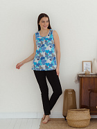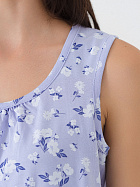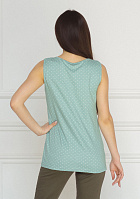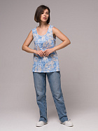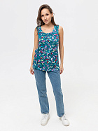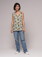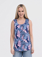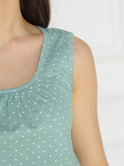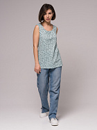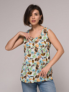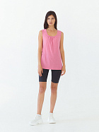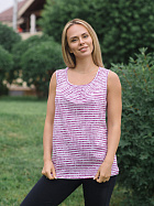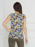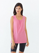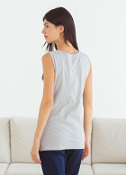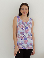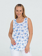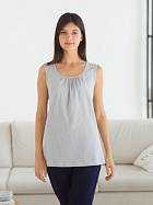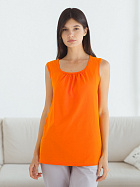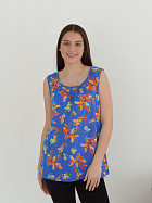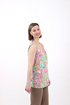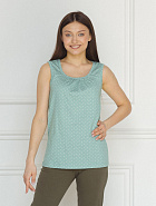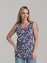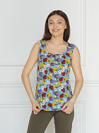 Майка женская прямого силуэта. В районе декольте небольшая сборка. Пройма и горловина обработана окантовкой.