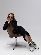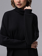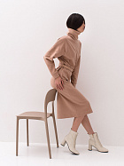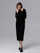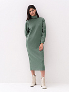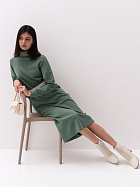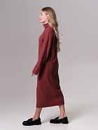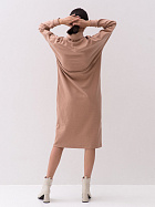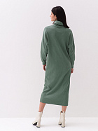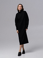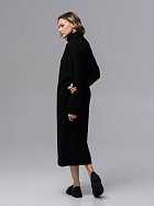 Платье прямого силуэта свободного объема длиной до середины икр. Длинный рукав на спущенном плече, по низу притачная манжета из основного полотна. Воротник стойка с отворотом.