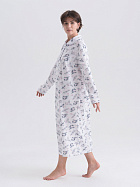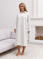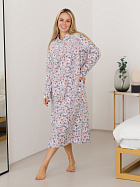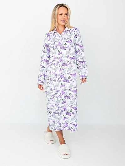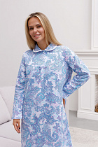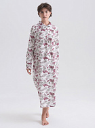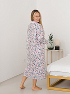 Сорочка полуприлегающего силуэта длиной "миди", с длинным рукавом. Горловина с отложным воротником. Полочка на кокетке. Кокетки застегиваются на пуговицы. По шву притачивания кокеток небольшая сборка.